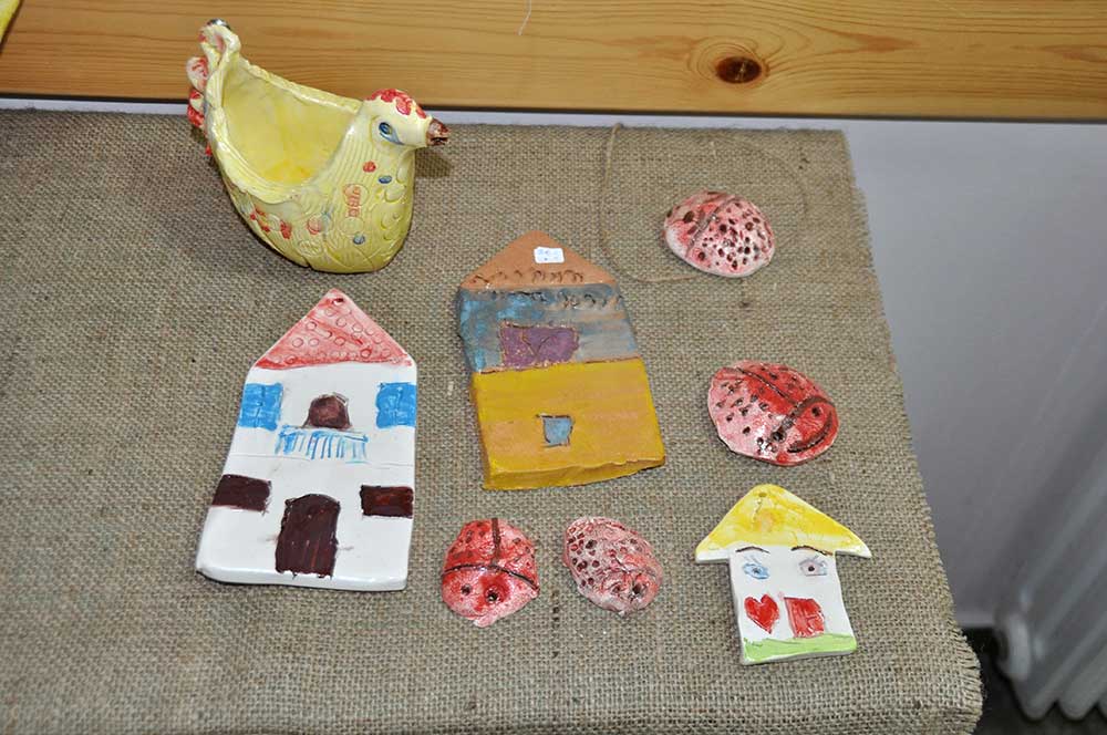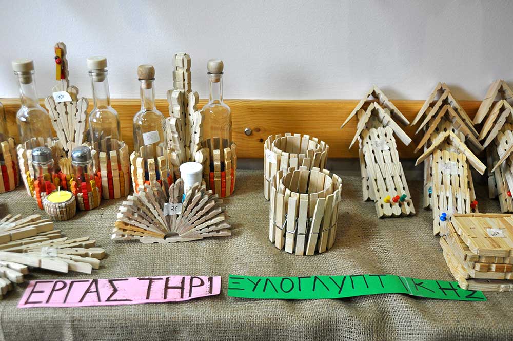Οι γονείς είχαν φτιάξει λαμπάδες και τα τμήματα των παιδιών έργα κεραμικής και διακοσμητικά αντικείμενα. Πολλές ήταν οι ωραίες δημιουργίες από ξύλινα μανταλάκια, από την ομάδα του Κώστα Κουράκου.