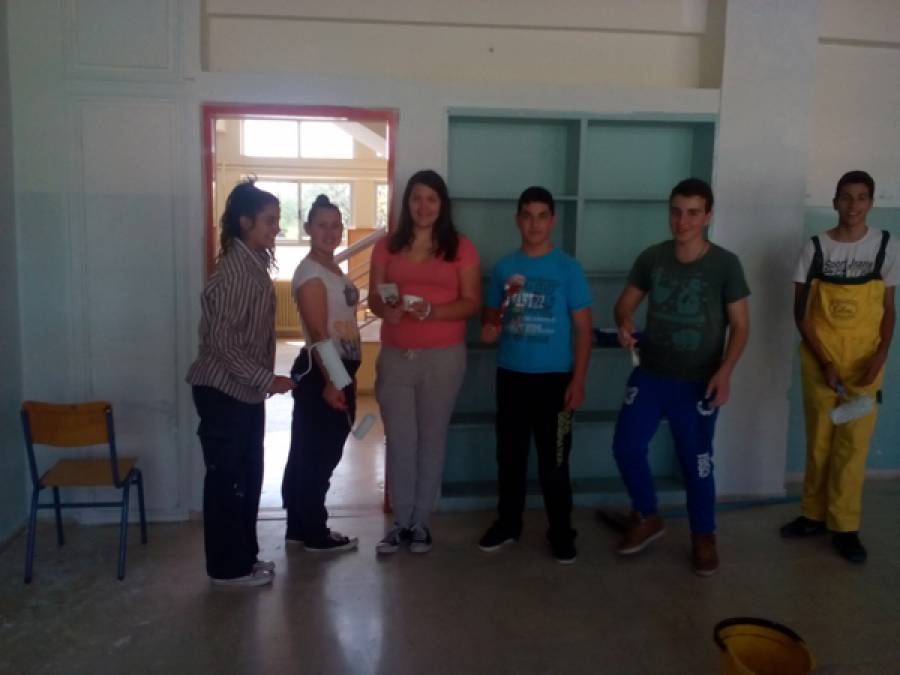 Ετσι, με τη συμβολή του Δήμου Καλαμάτας που αγόρασε τα χρώματα, ο Μάριος, η Γιώτα, η Χριστίνα, ο Παναγιώτης, η Νίνα και ο Παναγιώτης, το Σάββατο ανέλαβαν να ομορφύνουν την αίθουσά τους.