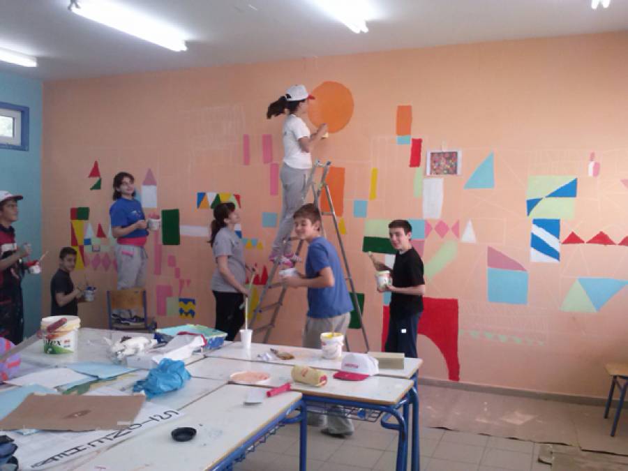 Να σημειώσουμε ότι δεν είναι μόνο ότι ζωγραφίζεται ένας πίνακας, αλλά πρώτα βάφεται όλη η αίθουσα και στην συνέχεια στην πλευρά που έχει τον περισσότερο χώρο σχεδιάζεται και ο πίνακας - η επιλογή του οποίου γίνεται από τους ίδιους τους μαθητές. Ετσι οι ομάδες των μαθητών που επιλέγονται, με ένα πινέλο στο χέρι, κάνουν καταπληκτική δουλειά.