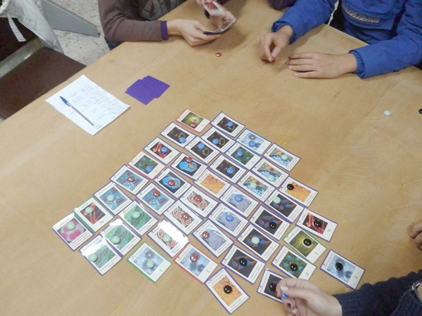 "Η προσπάθεια ξεκίνησε ξεκίνησε πέρσι με ένα παιχνίδι γνώσεων για διάφορα κεφάλαια της Βιολογίας της Α' Λυκείου. Γενικά, ο στόχος είναι να υπάρχει ένα παιχνίδι τουλάχιστον για κάθε τάξη του λυκείου. Το Μάρτιο παρουσίασα στο Εργαστηριακό Κέντρο Φυσικών Επιστημών στην Καλαμάτα – και ευχαριστώ γι’ αυτό το Διονύση Καρούνια και την Αννα Σωτηροπούλου – ένα παιχνίδι με κάρτες, με τίτλο «Μίτος». Σκοπός του είναι να φτιάξει ο μαθητής ή η ομάδα μαθητών το μεγαλύτερο δυνατό, συνεχόμενο «κύτταρο» με κάρτες οργανιδίων. Ολα αυτά έχουν ως βάση τους το σχολικό εγχειρίδιο της Β΄ Λυκείου. Η βασική ιδέα δεν είναι δική μου, αλλά δύο Αμερικάνων σχεδιαστών παιχνιδιών, που αναζήτησαν χρηματοδότηση μέσω του Kickstarter (www.kickstarter.com) για το δικό τους παιχνίδι με τίτλο “Vye”. Μάλιστα, επικοινώνησα μαζί τους μέσω email, χάρηκαν ιδιαιτέρως κι έδειξαν ενδιαφέρον για μια πιθανή τροποποίηση του παιχνιδιού τους, με βάση τη Βιολογία".