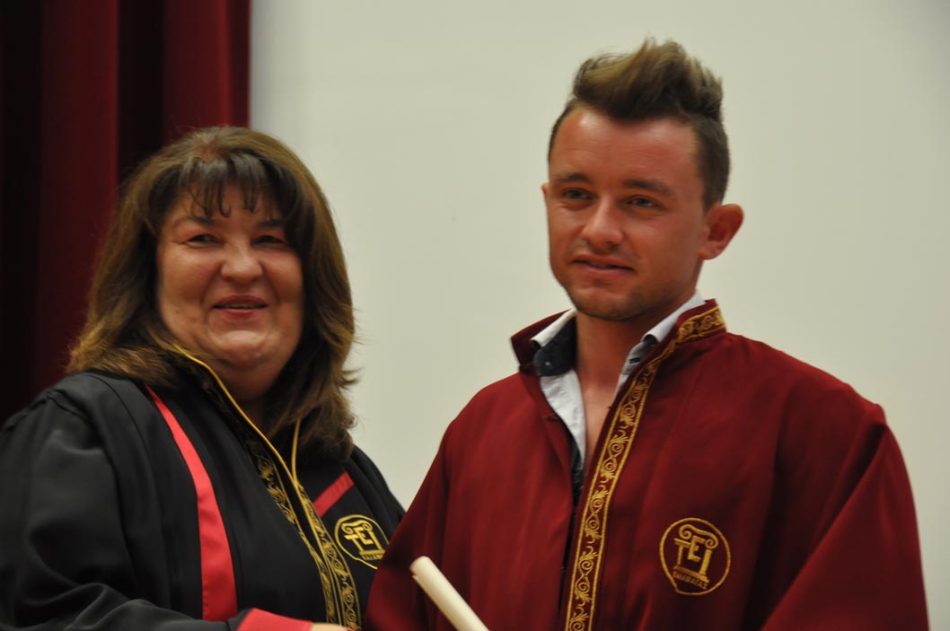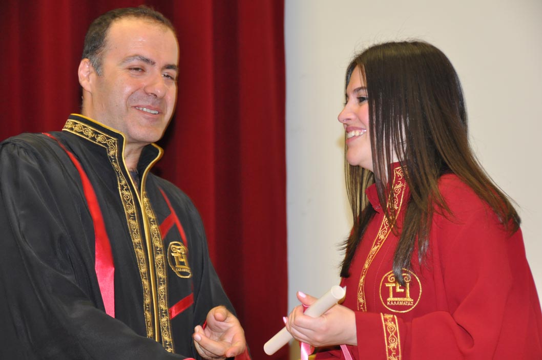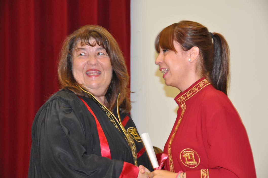 Τα πτυχία τους πήραν χθες 126 απόφοιτοι του ΤΕΙ Πελοποννήσου στην Καλαμάτα, οι οποίοι ολοκλήρωσαν με επιτυχία τις σπουδές τους στα Τμήματα Διοίκησης Επιχειρήσεων - Οργανισμών και Λογιστικής - Χρηματοοικονομικής.
