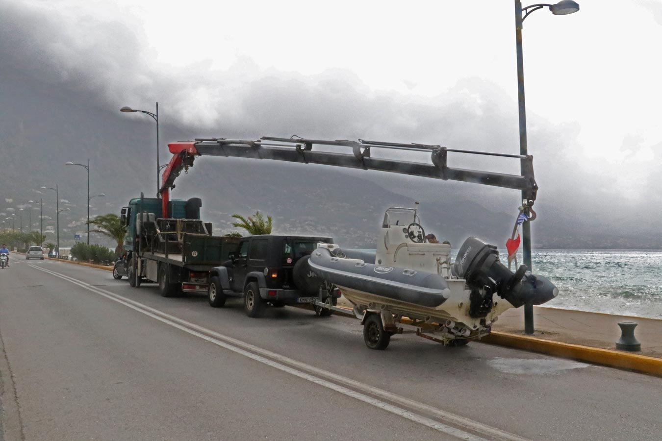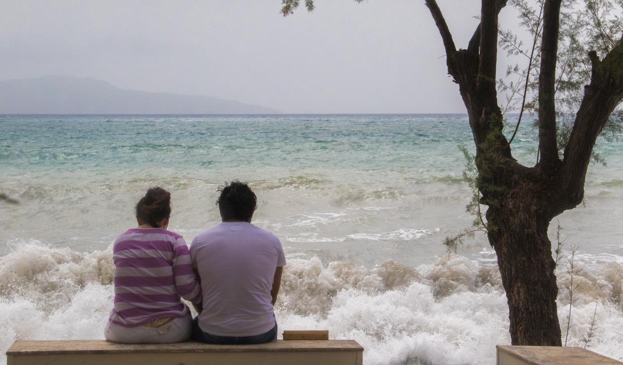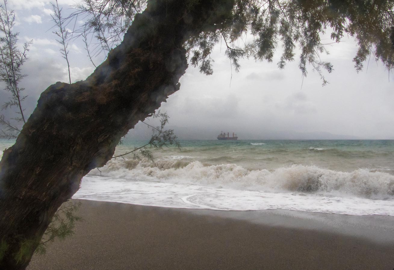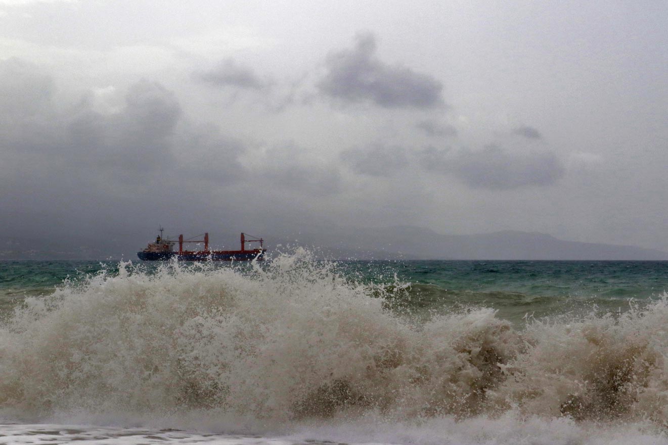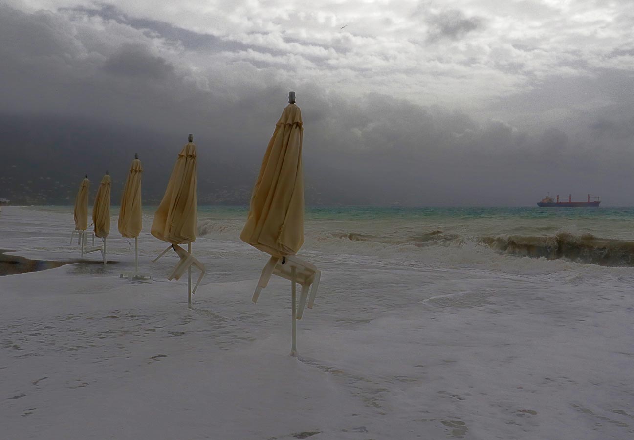 Τα τεράστια κύματα από τους ισχυρούς νοτιάδες ξέβρασαν καλάμια και άλλα σκουπίδια και παρέσυραν τις καρέκλες που είχαν απομείνει στην ακτή για τους κολυμβητές του φθινοπώρου.