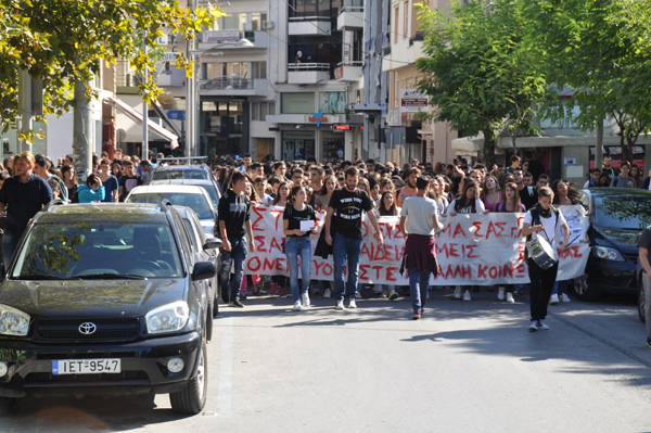 Μαθητές συγκεντρώθηκαν στην πλατεία 23ης Μαρτίου και στη συνέχεια προχώρησαν σε μουσική πορεία στο κέντρο της πόλης.