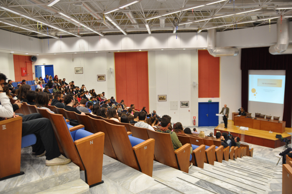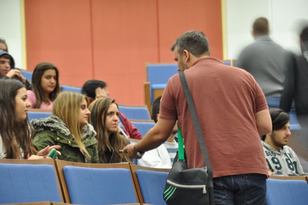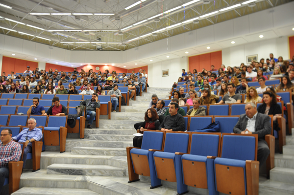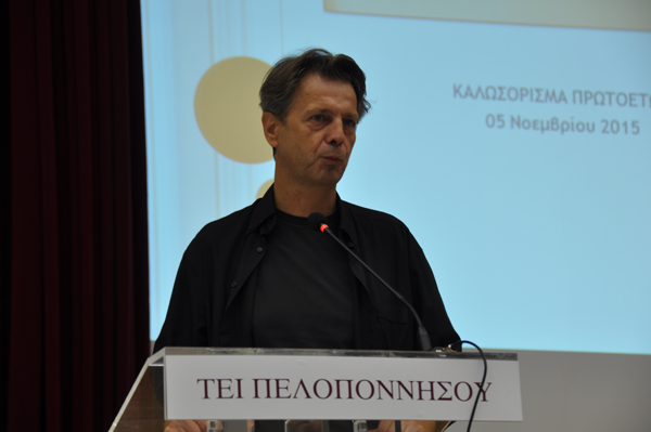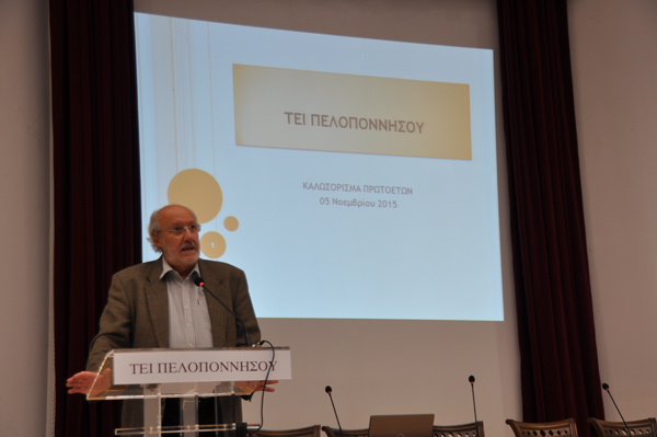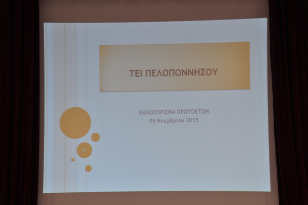 Πρώτη πήρε το λόγο η Γεωργία Λιάκουρα από τη γραμματεία, η οποία κάλεσε στο βήμα τον πρόεδρο Δημήτρη Βελισσαρίου. Ο ίδιος έδωσε διάφορες πληροφορίες στους πρωτοετείς για τις σπουδές τους, τα πτυχία και τα μεταπτυχιακά που μπορούν να κάνουν στη συνέχεια. Τους πρότεινε επίσης να ασχοληθούν με διάφορες πολιτιστικές δραστηριότητες μέσα στο ΤΕΙ. Ακολούθησε η προβολή παρουσίασης διαφανειών για τις σχολές και τα τμήματα και χαιρετισμός από τον αντιπρόεδρο Ιωάννη Δημόπουλο.