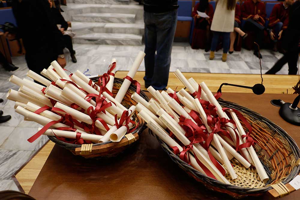 Αρχικά ορκίστηκαν οι απόφοιτοι του Τμήματος Λογιστικής και Χρηματοοικονομικής στις 11 π.μ. και των Τμημάτων Διοίκησης Μονάδων Υγείας και Πρόνοιας και Τοπικής Αυτοδιοίκησης στις 12.30 μ.μ. Τους όρκους διάβασαν οι πρωτεύσαντες Σταυρούλα Σκαλαίου και Δημήτρης Βεργόπουλος αντιδήμαρχος Καλαμάτας.