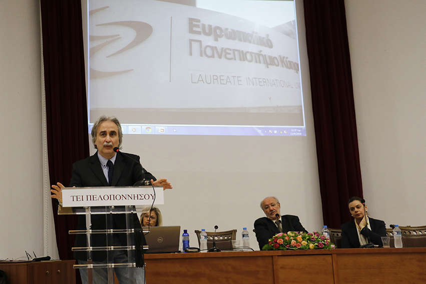 Αρχικά καλωσόρισε το κοινό η υπεύθυνη των δημοσίων σχέσεων Γεωργία Λιάκουρα και το λόγο πήρε ο πρόεδρος του ΤΕΙ Δημήτρης Βελισσαρίου, ο οποίος είπε πως το σύμφωνο αυτό αποτελεί μία μεγάλη τιμή για την πόλη. Μίλησε για τον πρύτανη του Ευρωπαϊκού Πανεπιστημίου Κύπρου καθηγητή Κώστα Γουλιάμο, ο οποίος γεννήθηκε και μεγάλωσε στην Καλαμάτα. "Είναι μία σημαντική διεθνής προσωπικότητα πάνω στο γνωστικό αντικείμενο του πολιτισμού, των ΜΜΕ και της ενημέρωσης.