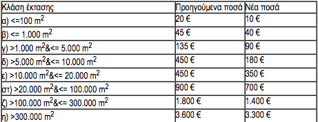 "Υπενθυμίζεται, ότι τα τέλη αντιρρήσεων, από τον Νοέμβριο 2016, είναι ήδη μειωμένα κατά 10%, σε σχέση την αντίστοιχη ΚΥΑ που είχε εκδοθεί το 2014. Η νέα ΚΥΑ προβλέπει την περαιτέρω μείωση των τελών, ειδικά για τους πολίτες που κατέχουν μικρές εκτάσεις, καθώς επίσης και τη διαίρεση της κατηγορίας από 5 έως 20 στρέμματα, σε δύο κατηγορίες, από 5 έως 10 στρέμματα και από 10 έως 20 στρέμματα.