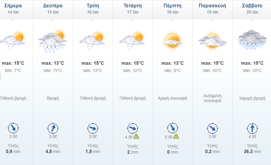 Πρόγνωση για αύριο Δευτέρα 15-01-2018