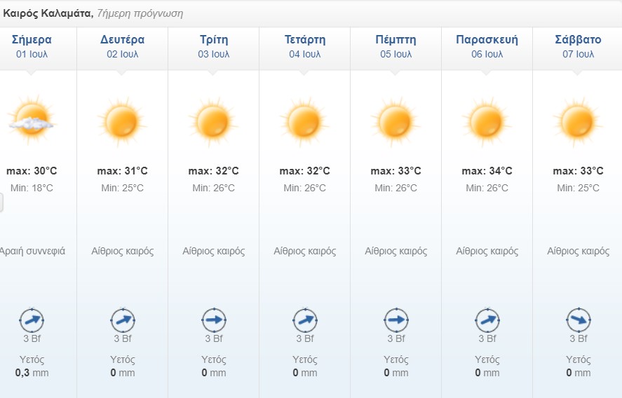 Ο καιρός στην Καλαμάτα μέσα από τον πίνακα του freemeteo: