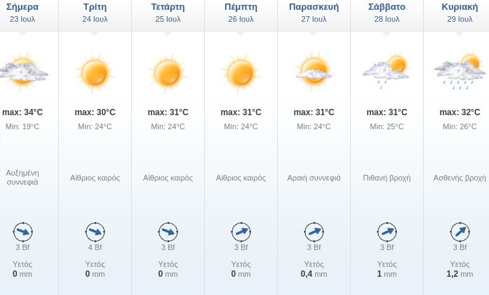 Ο καιρός στην Καλαμάτα μέσα από τον πίνακα του freemeteo: