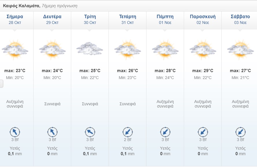 Ο καιρός στην Καλαμάτα μέσα από τον πίνακα του freemeteo: