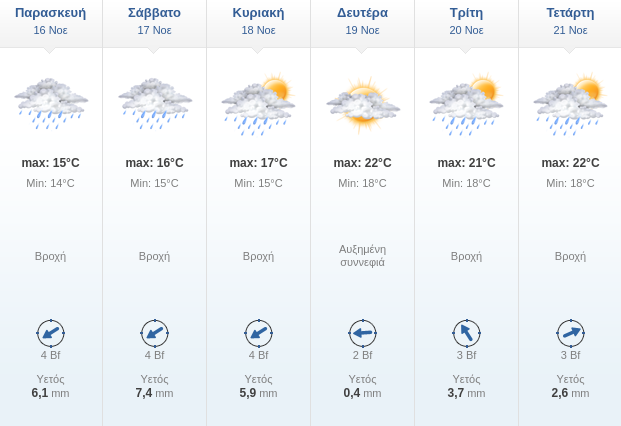 Ο καιρός στην Καλαμάτα μέσα από τον πίνακα του freemeteo: