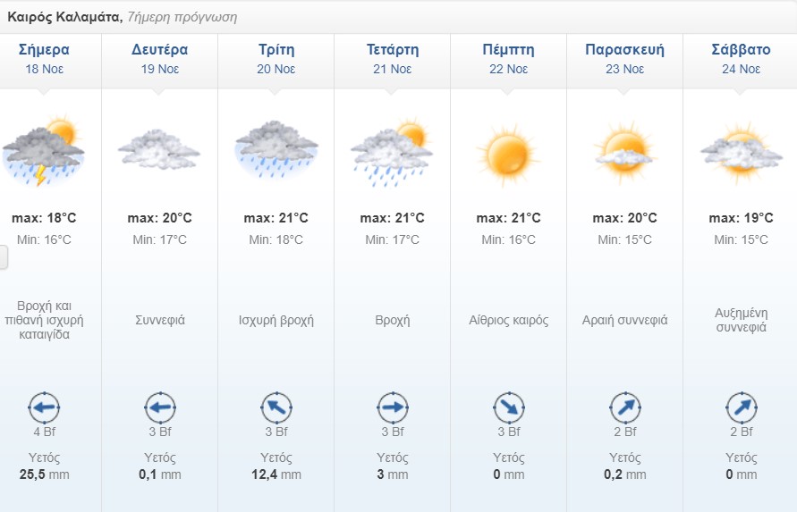 Ο καιρός στην Καλαμάτα μέσα από τον πίνακα του freemeteo: