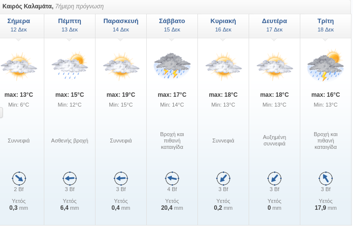 Ο καιρός στην Καλαμάτα μέσα από τον πίνακα του freemeteo:
