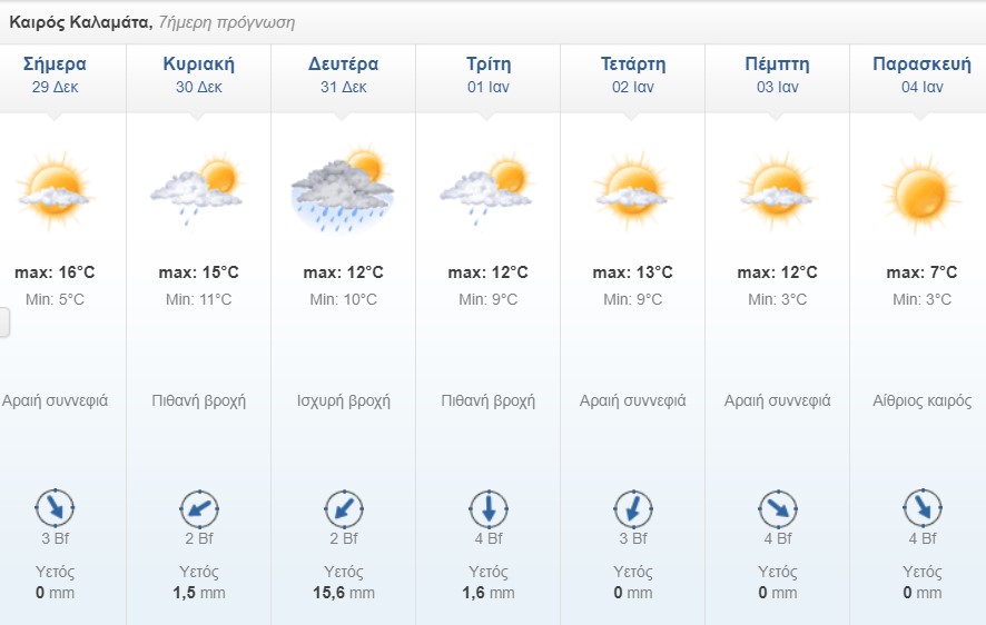 Ο καιρός στην Καλαμάτα μέσα από τον πίνακα του freemeteo: