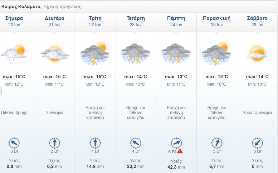 Ο καιρός στην Καλαμάτα μέσα από τον πίνακα του freemeteo: