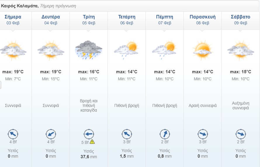 Ο καιρός στην Καλαμάτα μέσα από τον πίνακα του freemeteo: