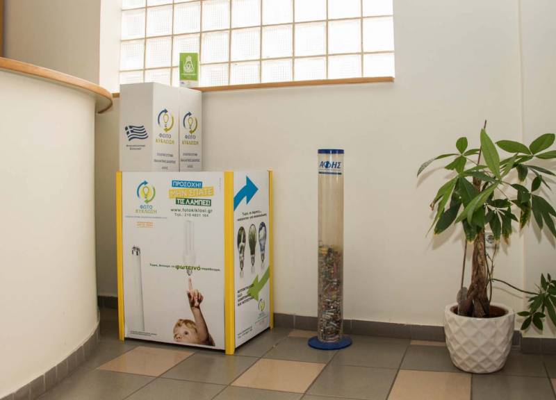 Έτσι μετά από την συγκέντρωση μπαταριών για ανακύκλωση, που λαμβάνει χώρα εδώ και χρόνια σε συνεργασία με την Ανακύκλωση Φορητών Ηλεκτρικών Στηλών (Α.Φ.Η.Σ.), ξεκινάει πλέον αντίστοιχο πρόγραμμα συγκέντρωσης λαμπτήρων και φωτιστικών για ανακύκλωση σε συνεργασία με την Φωτοκύκλωση Α.Ε.