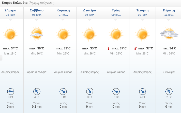 Ο καιρός στην Καλαμάτα μέσα από τον πίνακα του freemeteo: