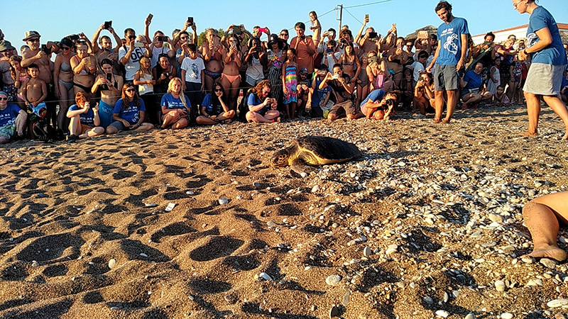 Μικρά παιδιά και μεγάλοι παρακολούθησαν με ενθουσιασμό την όλη διαδικασία και ξέσπασαν σε θερμό χειροκρότημα όταν η “Πηνελόπη” βρέθηκε και πάλι στα νερά του Ιονίου για να συνεχίσει τη ζωή και το ταξίδι της. Με την απελευθέρωσή της ξεκίνησε τα πρώτα της διστακτικά βήματα προς τη θάλασσα, που στη συνέχεια έγιναν πιο γρήγορα μέχρι που χάθηκε στα καταγάλανα νερά.