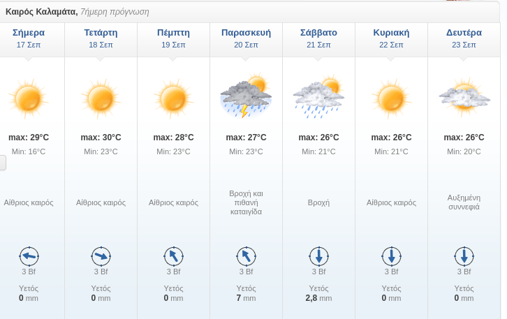 Ο καιρός στην Καλαμάτα μέσα από τον πίνακα του freemeteo: