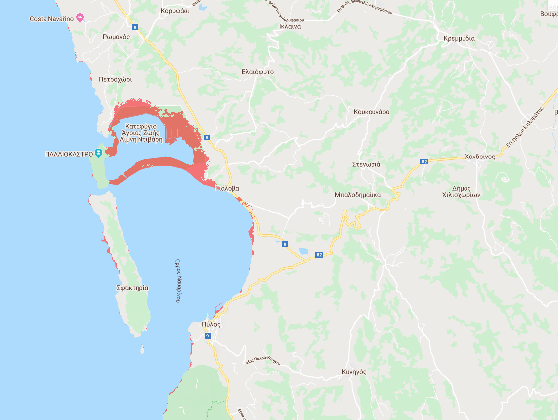 Αυτό αναφέρεται σε έρευνα της Climate Central που δημοσιεύει μαζί με χάρτες το περιοδικό “Nature”. Η ίδια έρευνα επισημαίνει τον κίνδυνο να γίνει θάλασσα η... λιμνοθάλασσα της Γιάλοβας με ολέθριες συνέπειες για το οικοσύστημα και ενδεχομένως με καταστροφή της παραλίας της Βοϊδοκοιλιάς. Στην Ελλάδα εκτός από τη Μεσσηνία θα πληγούν μεταξύ άλλων ο Νομός Θεσσαλονίκης, μέρος της Πιερίας, ο Νομός Αρτας, ο Νομός Αιτωλοακαρνανίας, η περιοχή της Ναυπάκτου, η περιοχή της Στυλίδας, και στη βορειοδυτική Πελοπόννησο οι περιοχές της Βάρδας, της Κυλλήνης και των Λεχαινών.