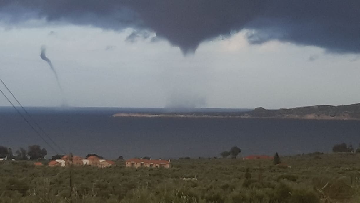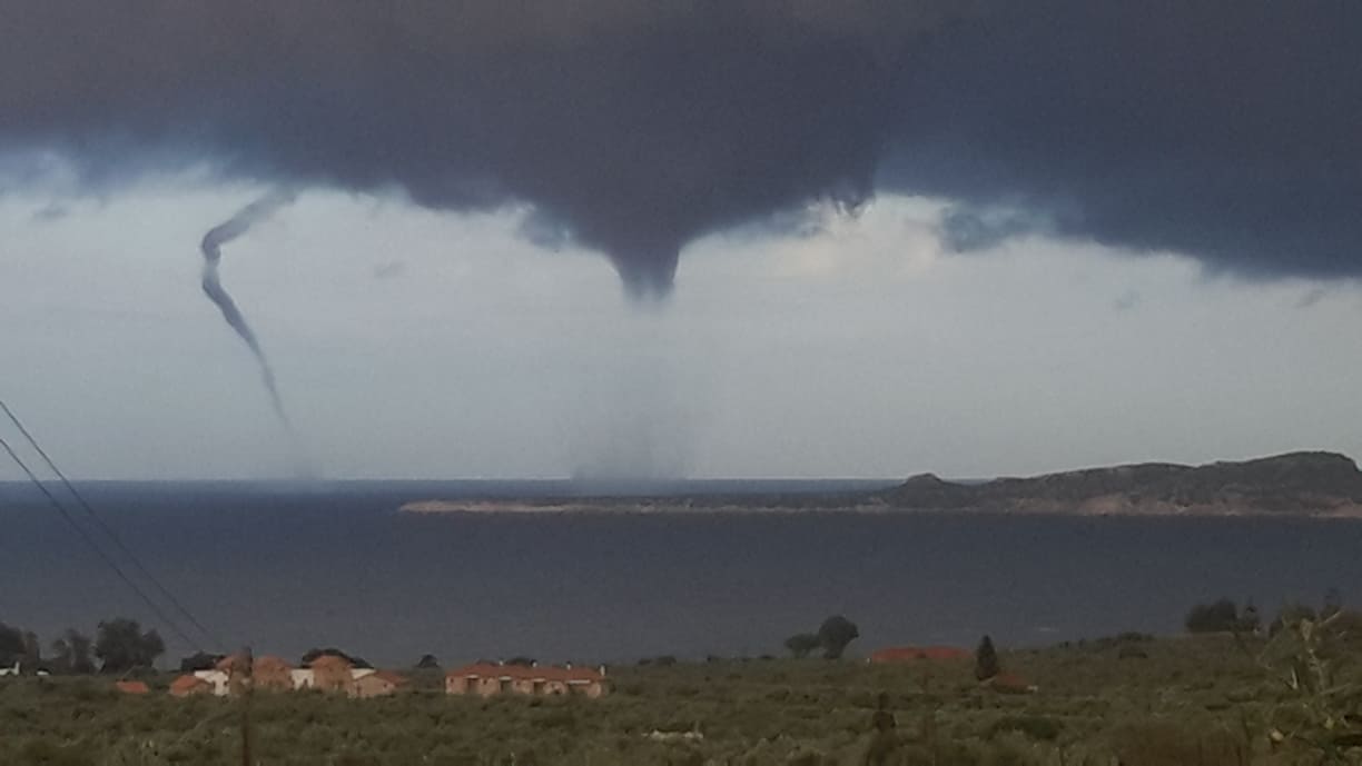 Μία σειρά εντυπωσιακών υδροστρόβιλων έκαναν την εμφάνισή τους το πρωί της Δευτέρας στη θαλάσσια περιοχή της νήσου Πρώτη, απέναντι από τη Μαραθόπολη.