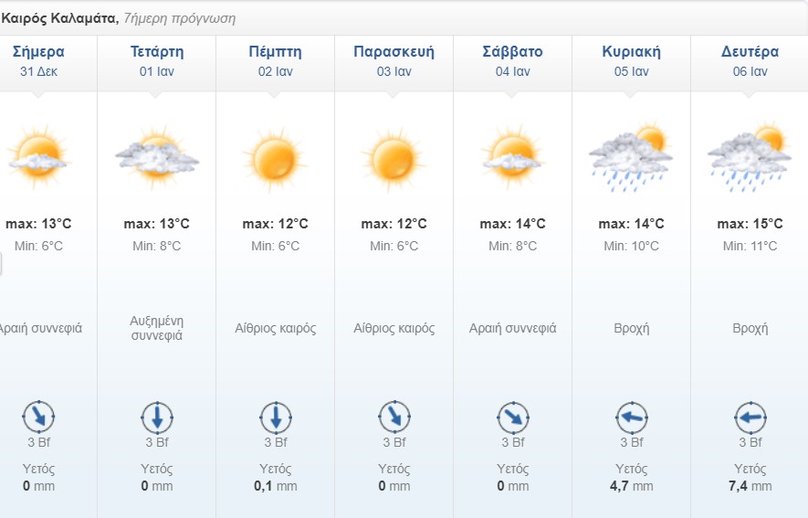 Ο καιρός στην Καλαμάτα μέσα από τον πίνακα του freemeteo: