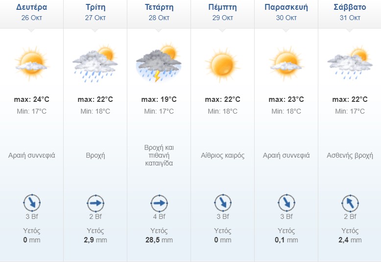 Ο καιρός στην Καλαμάτα μέσα από τον πίνακα του freemeteo: