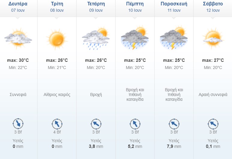 Οι προβλέψεις για την Καλαμάτα μέσα από τον πίνακα του freemeteo: