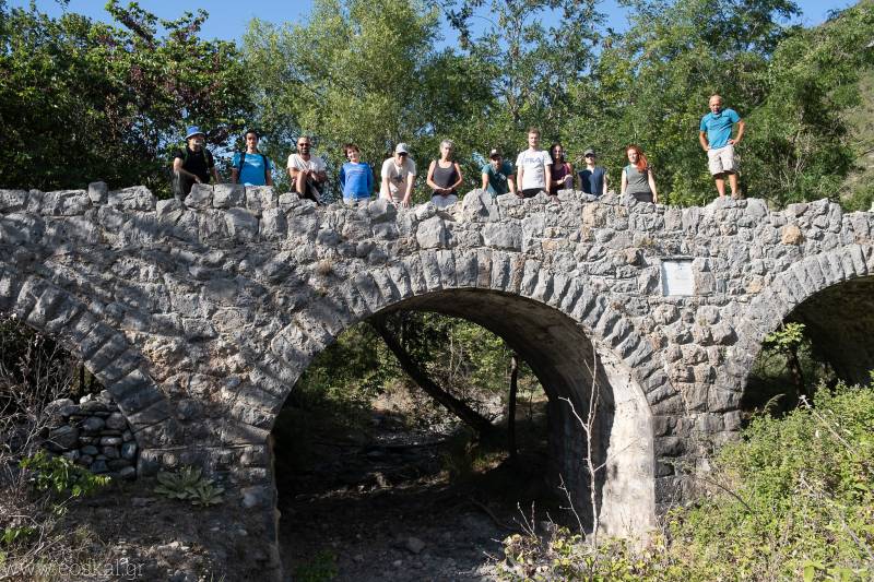 Παρόλα αυτά η πεζοπορία μας την περασμένη Κυριακή ήταν μια ευχάριστη και δροσερή απόδραση μέσα στο καλοκαίρι δίπλα στην πόλη μας. Η πεζοπορία ξεκίνησε από την πρόσφατα ανακαινισμένη Ι.Μ. Βελανιδιάς και το μονοπάτι που συνδέει την περιοχή με τη σκήτη Ιεζεκιήλ και το φαράγγι. Το μονοπάτι αυτό έχει σηματοδοτηθεί από τον ορειβατικό σύλλογο Καλαμάτας και αποτελεί μια ενδιαφέρουσα παραλλαγή προσέγγισης του φαραγγιού. Στο δεύτερο τμήμα του χρειάζεται ιδιαίτερη προσοχή από τους αρχάριους, ωστόσο με την συνδρομή παλαιότερων μελών του συλλόγου η κατάβαση έγινε χωρίς προβλήματα. Το μονοπάτι εισέρχεται στην κοίτη μετά το πρώτο φράγμα. Η πορεία στο πρώτο τμήμα του φαραγγιού περιλάμβανε τα μεγάλα φράγματα στα οποία ανεβήκαμε από τις παλιές πέτρινες σκάλες. Σε αυτό το τμήμα και αυτή την εποχή του χρόνου δεν συναντάμε νερό. Ωστόσο, όποιος έχει την τύχη να βρεθεί στα φράγματα κατά τους χειμερινούς μήνες θα αντικρύσει το μοναδικό θέαμα των καταρρακτών που σχηματίζουν τα νερά που κυλάνε στο φαράγγι.
