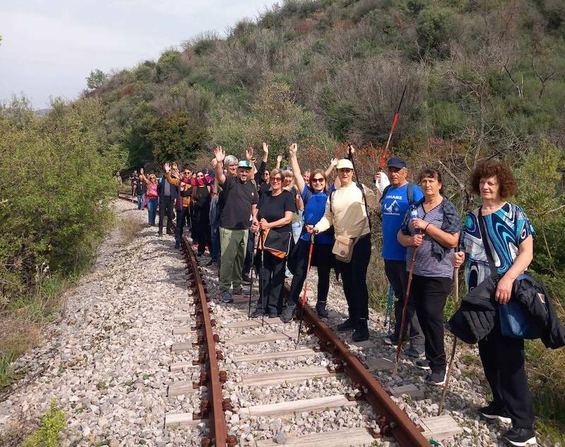 Μας οδήγησαν πεζοπορώντας σε μια κυκλική διαδρομή 11 χλμ. συνολικά, μέσω του σιδηροδρομικού δικτύου και πάνω στην γραμμή ψηλά στο λόφο στην Ακρόπολη του Ελληνικού, στα τείχη της Αρχαίας Ανδανίας, όπου και μας ξενάγησε ένας ντόπιος γιατρός μέλος της ομάδας ο Ηλίας Σακελλαριάδης. Συνεχίζοντας από την αντίθετη κατεύθυνση, αφού ξεκουραστήκαμε στο σταθμό κι απολαύσαμε τα καλούδια τους, μας πήγαν και μας έδειξαν τους δυο καταρράκτες του Παραπουγγίου, μια όαση δροσιάς που το νερό έπεφτε κελαρυστό.Τι να πούμε γι' αυτούς τους ανθρώπους!!