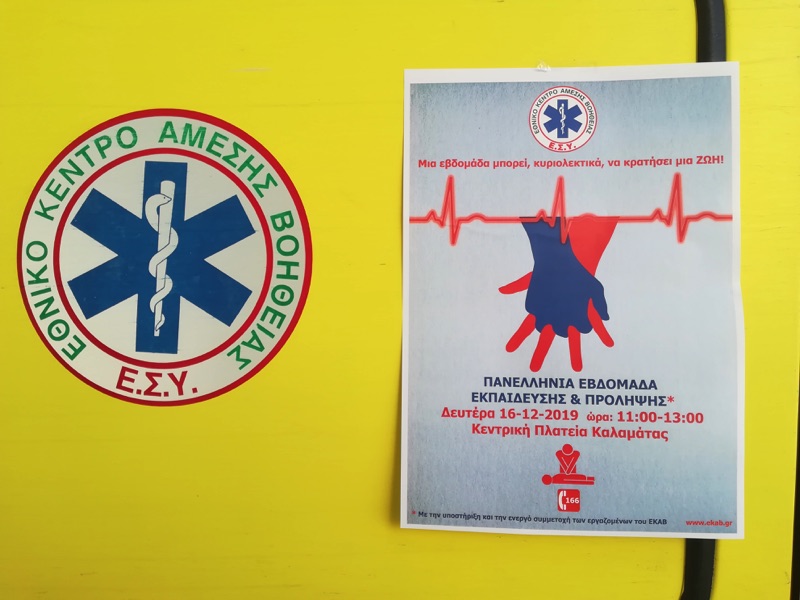 Η εκπαίδευση του κοινού έγινε στο πλαίσιο της σχετικής Πανελλήνιας Εβδομάδας Εκπαίδευσης και Πρόληψης, που το ΕΚΑΒ οργανώνει για 7η χρονιά. Χθες το πρωί λοιπόν αντίστοιχη δίωρη δράση οργανώθηκε και στην κεντρική πλατεία Καλαμάτας, διαχέοντας το μήνυμα: «Μια εβδομάδα μπορεί, κυριολεκτικά, να κρατήσει μια ζωή!».