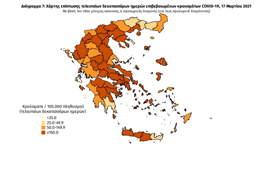 Με βάση τα επιβεβαιωμένα κρούσματα των τελευταίων 7 ημερών, 75 θεωρούνται σχετιζόμενα με ταξίδι από το εξωτερικό και 1.966 είναι σχετιζόμενα με ήδη γνωστό κρούσμα.