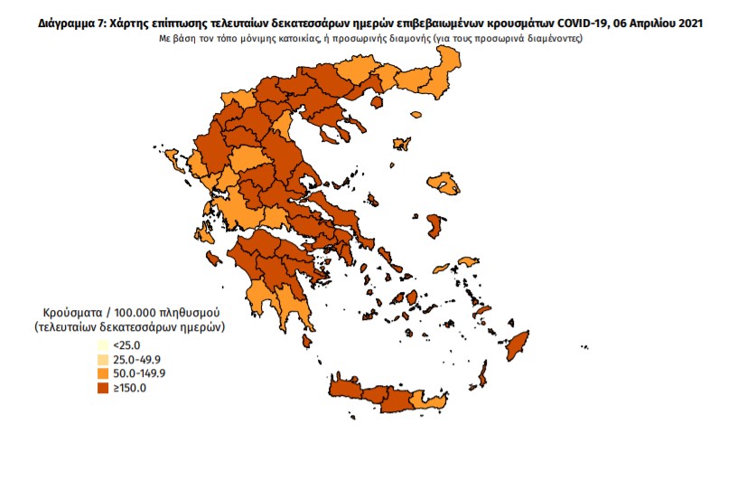 Με βάση τα επιβεβαιωμένα κρούσματα των τελευταίων 7 ημερών, 94 θεωρούνται σχετιζόμενα με ταξίδι από το εξωτερικό και 2.773 είναι σχετιζόμενα με ήδη γνωστό κρούσμα.