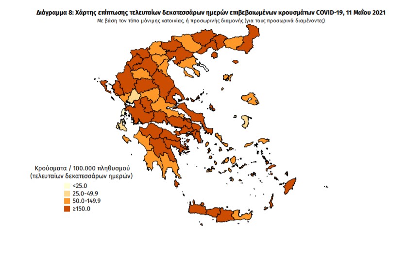 Οι νέοι θάνατοι ασθενών με COVID-19 είναι 52, ενώ από την έναρξη της επιδημίας έχουν καταγραφεί συνολικά 11.141 θάνατοι. Το 95.2% είχε υποκείμενο νόσημα ή/και ηλικία 70 ετών και άνω.