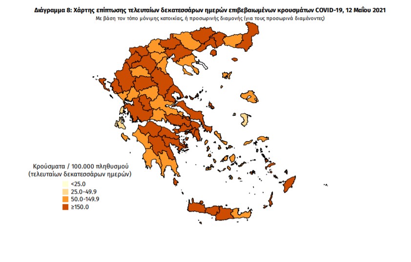 Οι νέοι θάνατοι ασθενών με COVID-19 είναι 70, ενώ από την έναρξη της επιδημίας έχουν καταγραφεί συνολικά 11.211 θάνατοι. Το 95.2% είχε υποκείμενο νόσημα ή/και ηλικία 70 ετών και άνω.
