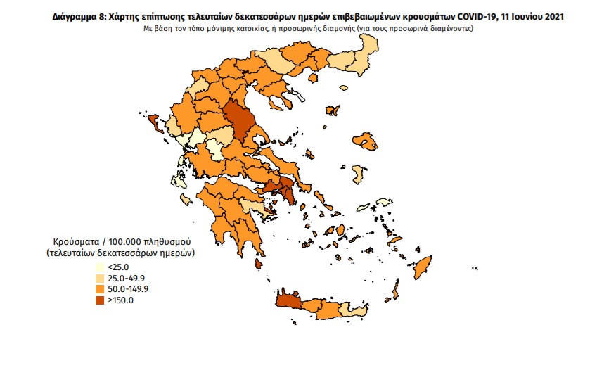 Με βάση τα επιβεβαιωμένα κρούσματα των τελευταίων 7 ημερών, 29 θεωρούνται σχετιζόμενα με ταξίδι από το εξωτερικό και 1.081 είναι σχετιζόμενα με ήδη γνωστό κρούσμα.