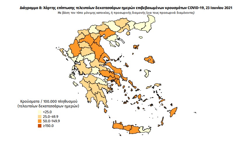 Οι νέοι θάνατοι ασθενών με COVID-19 είναι 14, ενώ από την έναρξη της επιδημίας έχουν καταγραφεί συνολικά 12.595 θάνατοι. Το 95.2% είχε υποκείμενο νόσημα ή/και ηλικία 70 ετών και άνω.