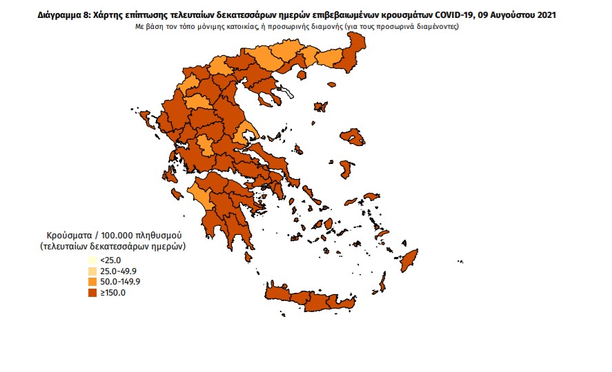 Με βάση τα επιβεβαιωμένα κρούσματα των τελευταίων 7 ημερών, 116 θεωρούνται σχετιζόμενα με ταξίδι από το εξωτερικό και 2.389 είναι σχετιζόμενα με ήδη γνωστό κρούσμα.