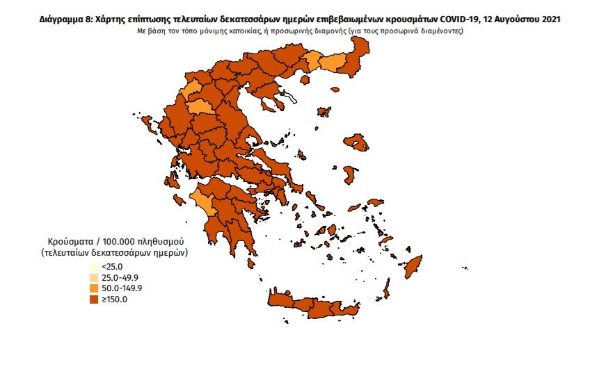 Με βάση τα επιβεβαιωμένα κρούσματα των τελευταίων 7 ημερών, 130 θεωρούνται σχετιζόμενα με ταξίδι από το εξωτερικό και 2.533 είναι σχετιζόμενα με ήδη γνωστό κρούσμα.