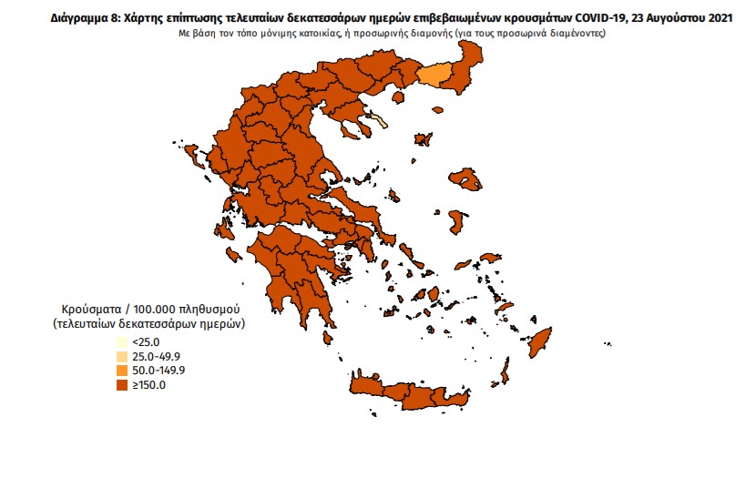 Με βάση τα επιβεβαιωμένα κρούσματα των τελευταίων 7 ημερών, 157 θεωρούνται σχετιζόμενα με ταξίδι από το εξωτερικό και 1.702 είναι σχετιζόμενα με ήδη γνωστό κρούσμα.