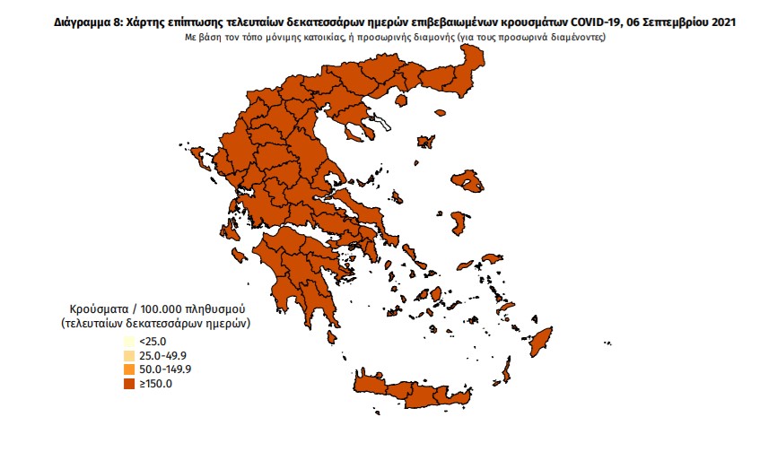Οι νέοι θάνατοι ασθενών με COVID-19 είναι 47, ενώ από την έναρξη της επιδημίας έχουν καταγραφεί συνολικά 13.933 θάνατοι. Το 95.4% είχε υποκείμενο νόσημα ή/και ηλικία 70 ετών και άνω.