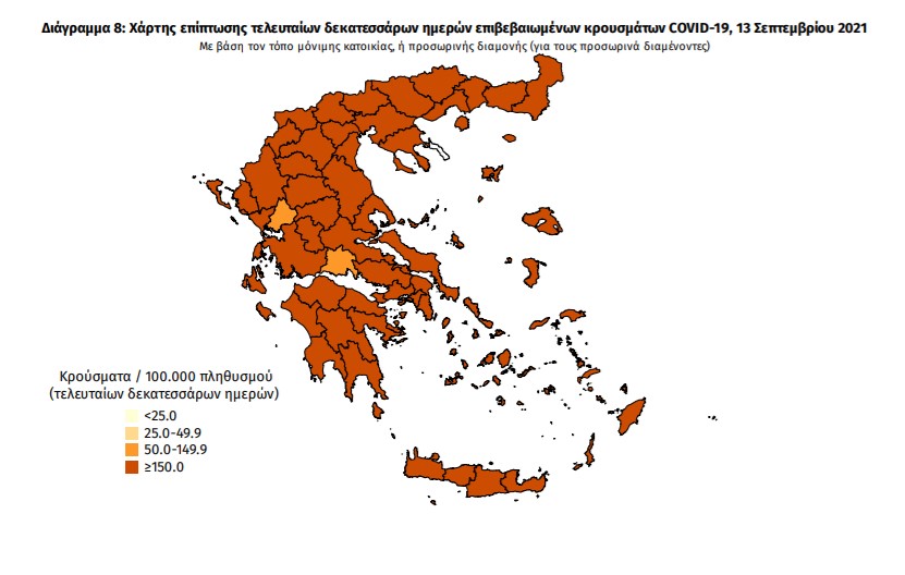 Οι νέοι θάνατοι ασθενών με COVID-19 είναι 51, ενώ από την έναρξη της επιδημίας έχουν καταγραφεί συνολικά 14.223 θάνατοι. Το 95.4% είχε υποκείμενο νόσημα ή/και ηλικία 70 ετών και άνω.