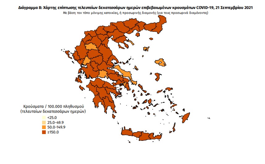 Με βάση τα επιβεβαιωμένα κρούσματα των τελευταίων 7 ημερών, 134 θεωρούνται σχετιζόμενα με ταξίδι από το εξωτερικό και 3.178 είναι σχετιζόμενα με ήδη γνωστό κρούσμα.