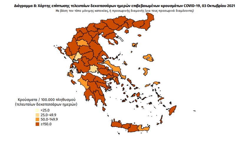 Με βάση τα επιβεβαιωμένα κρούσματα των τελευταίων 7 ημερών, 85 θεωρούνται σχετιζόμενα με ταξίδι από το εξωτερικό και 3.228 είναι σχετιζόμενα με ήδη γνωστό κρούσμα.