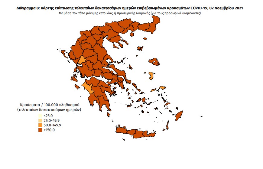 Οι νέοι θάνατοι ασθενών με COVID-19 είναι 59, ενώ από την έναρξη της επιδημίας έχουν καταγραφεί συνολικά 16.050 θάνατοι. Το 95.4% είχε υποκείμενο νόσημα ή/και ηλικία 70 ετών και άνω.
