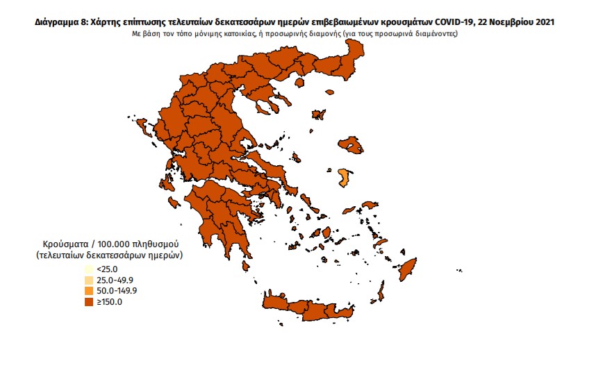 Ο συνολικός αριθμός των κρουσμάτων ανέρχεται σε 886.207 (ημερήσια μεταβολή +0.8%), εκ των οποίων 50.6% άνδρες. Με βάση τα επιβεβαιωμένα κρούσματα των τελευταίων 7 ημερών, 87 θεωρούνται σχετιζόμενα με ταξίδι από το εξωτερικό και 2.477 είναι σχετιζόμενα με ήδη γνωστό κρούσμα.