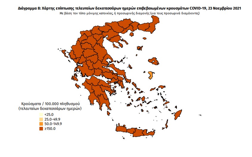 Με βάση τα επιβεβαιωμένα κρούσματα των τελευταίων 7 ημερών, 93 θεωρούνται σχετιζόμενα με ταξίδι από το εξωτερικό και 2.355 είναι σχετιζόμενα με ήδη γνωστό κρούσμα.