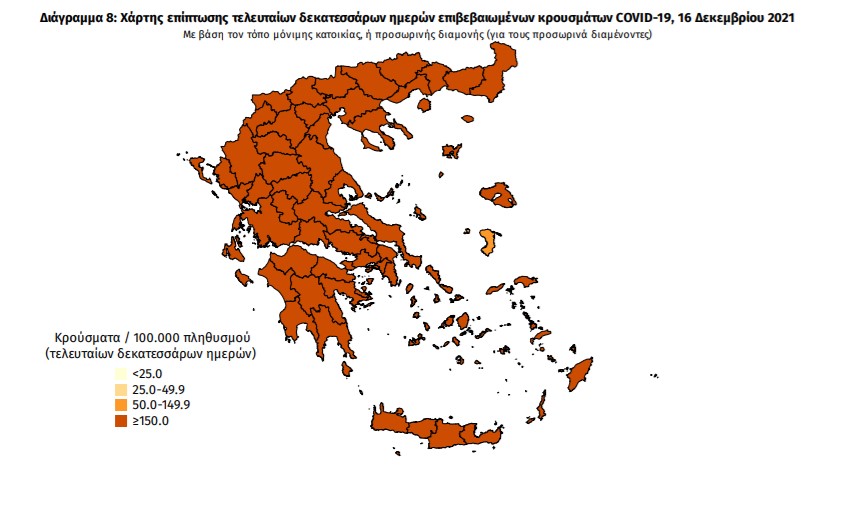Οι νέοι θάνατοι ασθενών με COVID-19 είναι 96, ενώ από την έναρξη της επιδημίας έχουν καταγραφεί συνολικά 19.651 θάνατοι. Το 95.3% είχε υποκείμενο νόσημα ή/και ηλικία 70 ετών και άνω.